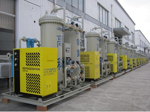 制氮機以空氣為原料,制氮機以碳分子篩(CMS)為吸附劑,采用常溫下變壓吸附原理(PSA)分離空氣制取高純度的氮氣。